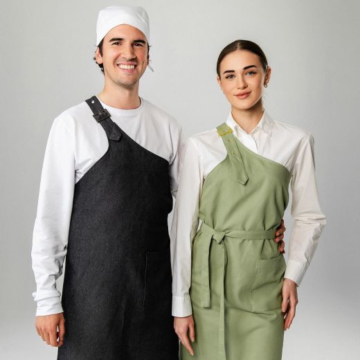Фартук повара, в зависимости от специфики работы, может быть легким передником, или плотным длинным, максимально закрывающим фигуру.