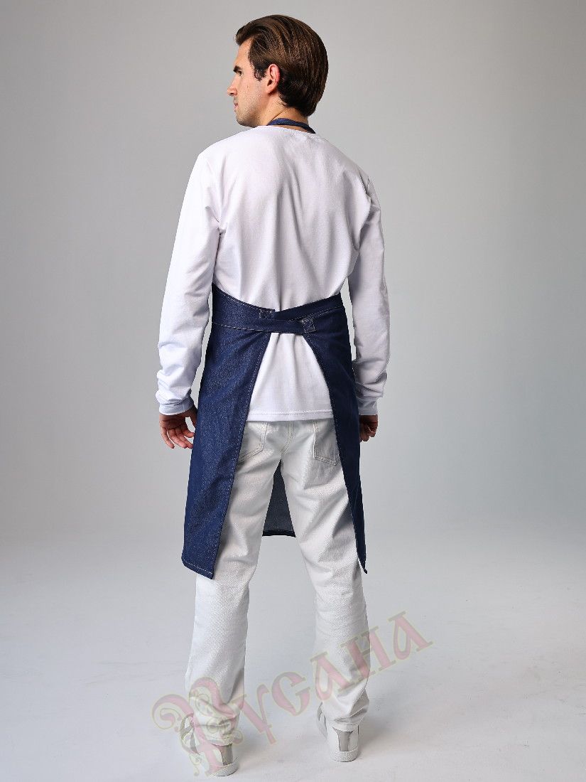 Фартук официанта "Сочи" - простой и стильный фартук из джинсы с перекрещивающимися бретелями по спинке. Джинс плотный, очень практичный и долго носится. Данная модель фартука очень удобна. Бретели не спадают и не натирают. Также возможно регулировать размер. Может быть выполнен в различных цветах и дополнен вышивкой логотипа.