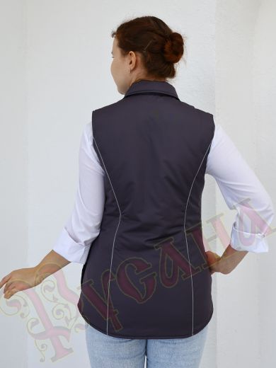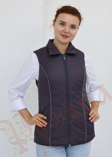 Жилет утепленный "Звезда-1" рабочий приталенная модель жилета. Женственность придают кантики в швах рельефов. Длина жилетки до середины бёдер. Ткань в этом жилете таслан. Это плотная курточная ткань с матовым блеском. Утеплитель 200 г/кв.м. Воротник отложной классической формы. Застежка молния. По желанию заказчика молнию можно сделать тракторную или с металлическими звеньями. Карманы прорезные листочки, на кнопке. Жилет отлично зарекомендовал себя в униформе продавцов и администраторов.
