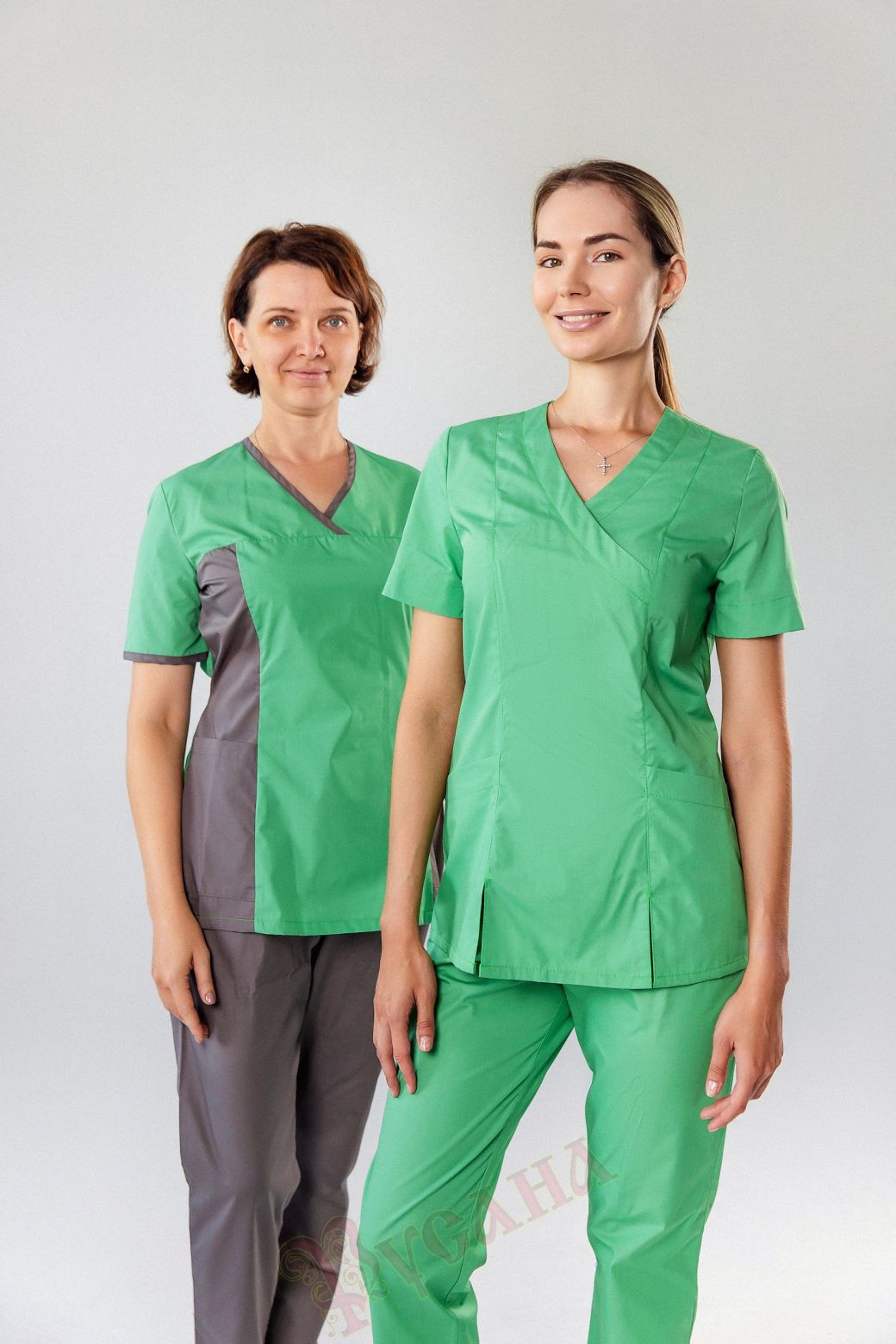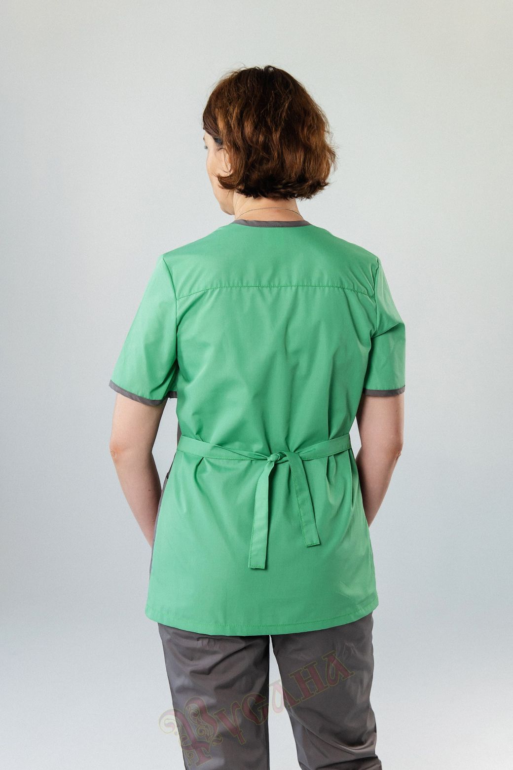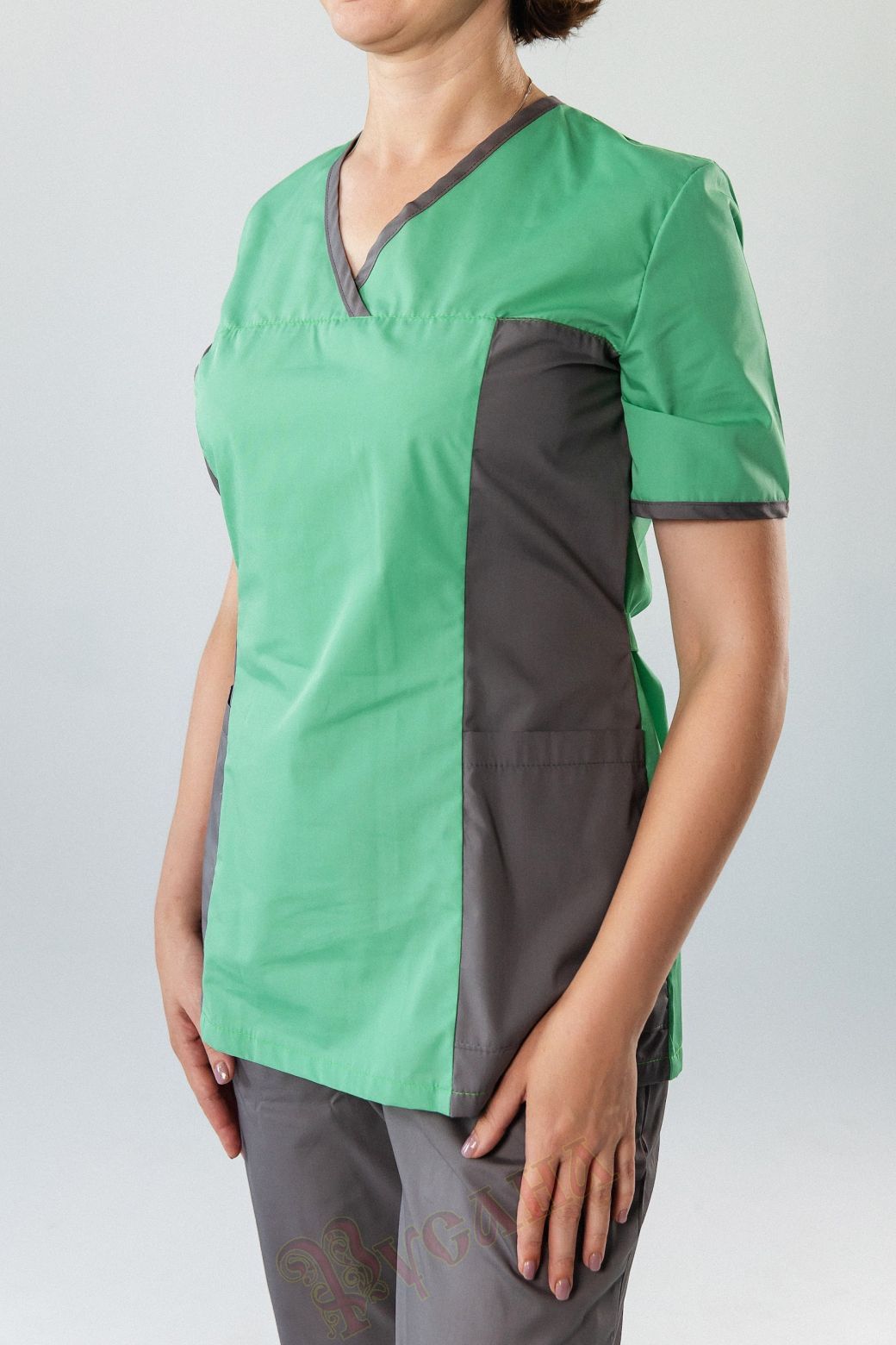 Костюм "Светлячок" состоит из куртки и брюк. Куртка полуприлегающего силуэта. Боковые части из более темной ткани придают образу стройность. Окантовка отделочной тканью по горловине и рукаву. Карманы у куртки в швах. Полупояса из боковых швов регулируют прилегание в области талии. Брюки на резинке и заужены к низу. Модель не стесняет свободу движения, подчеркивает достоинства фигуры и скрывает недостатки. Подойдет для бьюти сферы и персонала СПА салонов.