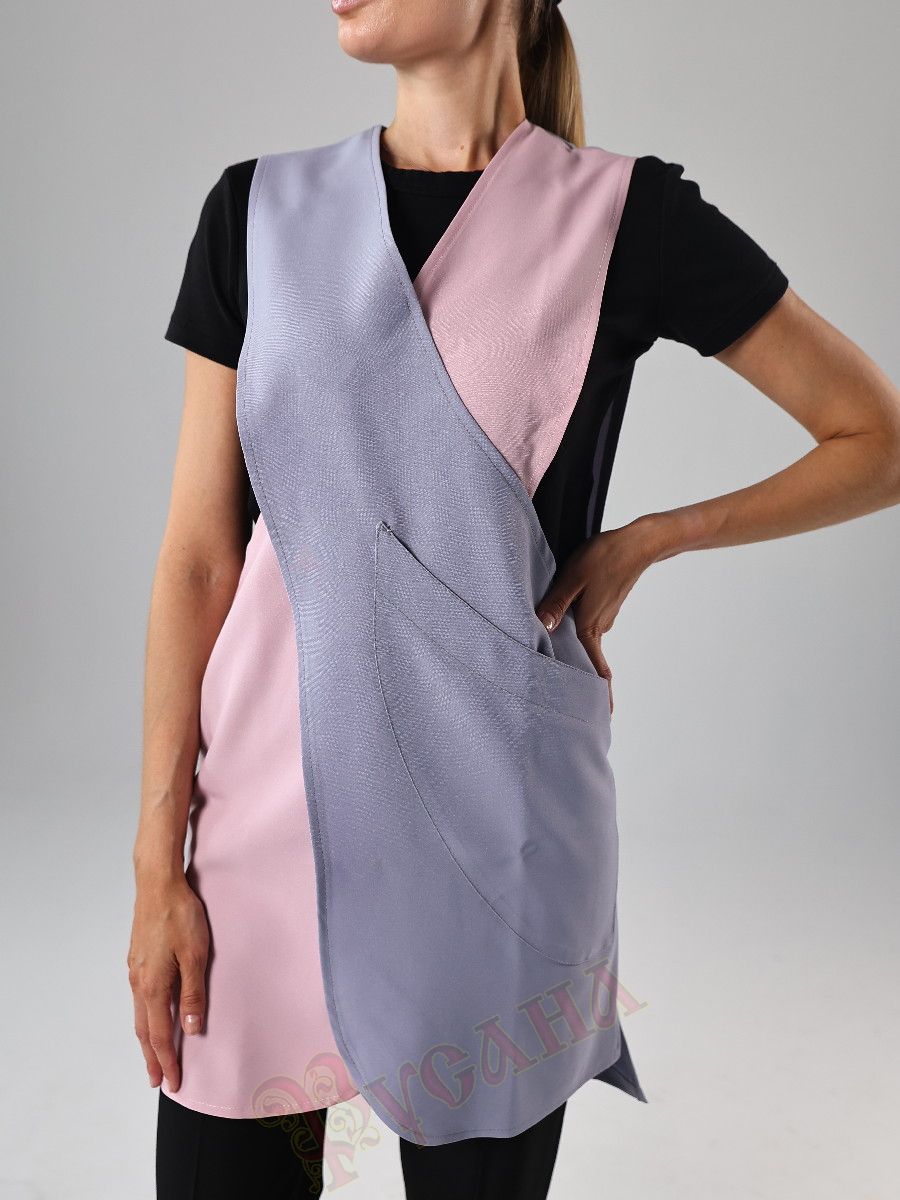 Сарафан "Кари" - новая модель, разработка нашего дизайнера. Свободная модель. Спинка прямая, на 5-7см длиннее переда. Перед состоит из двух перекрещивающихся деталей, детели не скреплены между собой, что дает хорошую свободу, воздухопроницаемость и стильный внешний вид. Карман фигурной формы, повторяющей линию низа полочки. Может быть изготовлен из ткани одного цвета или в сочетании двух цветов.
