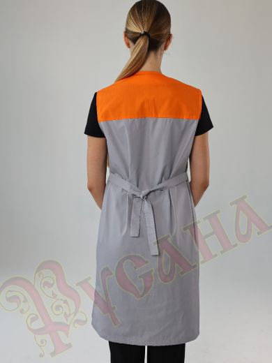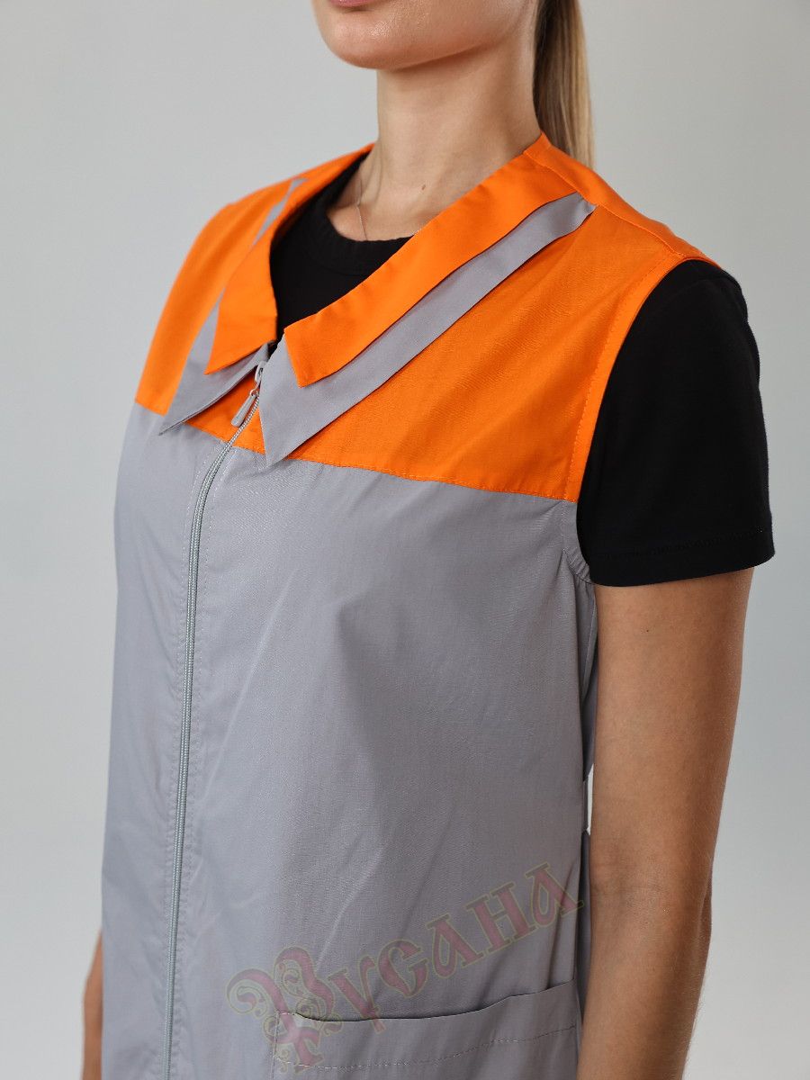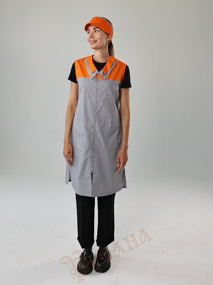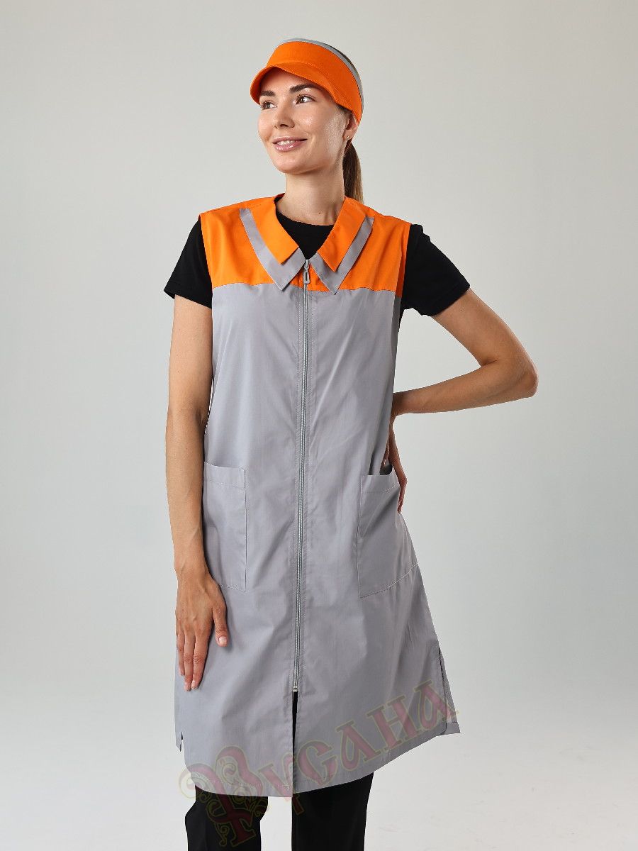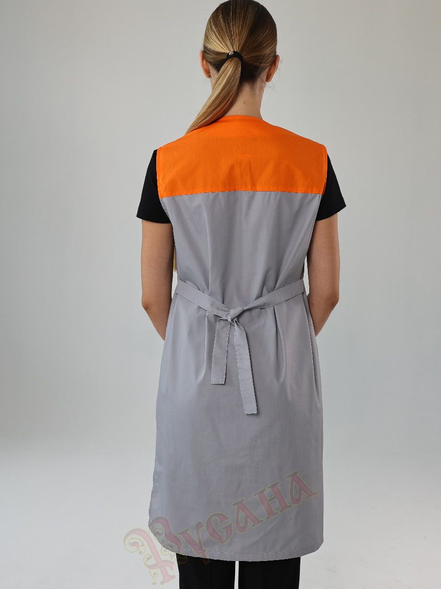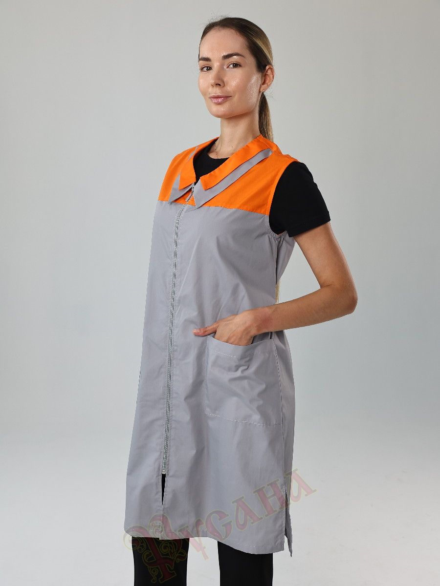 Сарафан, или как часто называют это изделие - халат без рукавов "бежин луг" - отличное решение для униформы продавца в супермаркете. Полупояса из боковых швов для регулировки талии. Кокетка по переду и спинки. Сарафан выполнен на основе халата для продавцов "Бежин луг". Сочетание цветов, которое используется в вашей корпоративной униформе, позволит получить идеальную форму, которая подойдет под ваш стиль. Сарафан может быть выполнен в плотной ткани смесовой или в габардине. Застежка - молния, отложной воротник, разрезы по бокам.