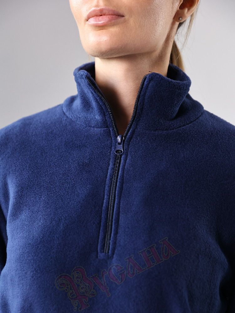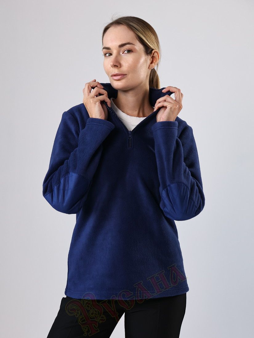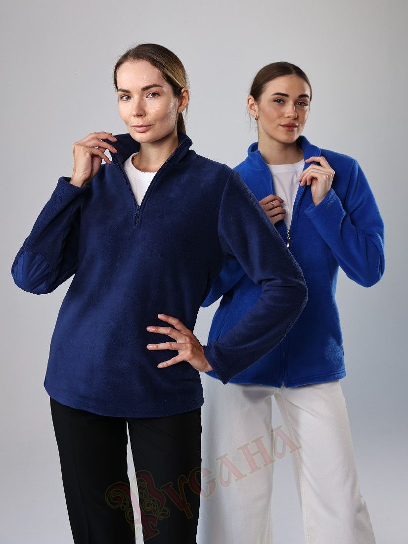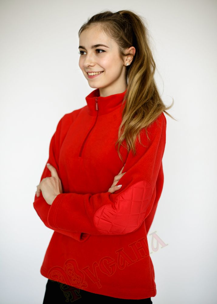 Свитшот (толстовка) из флиса. Молния до середины груди, воротник стойка. Карманов нет (можем добавить по желанию заказчика). На рукавах налокотники из стеганой плащевки. Могут быть в цвет изделия или контрастного цвета, например, в цвет жилета. Флис отлично себя зарекомендовал не только для спортивной одежды, но и в изделиях для униформы и промо одежды.