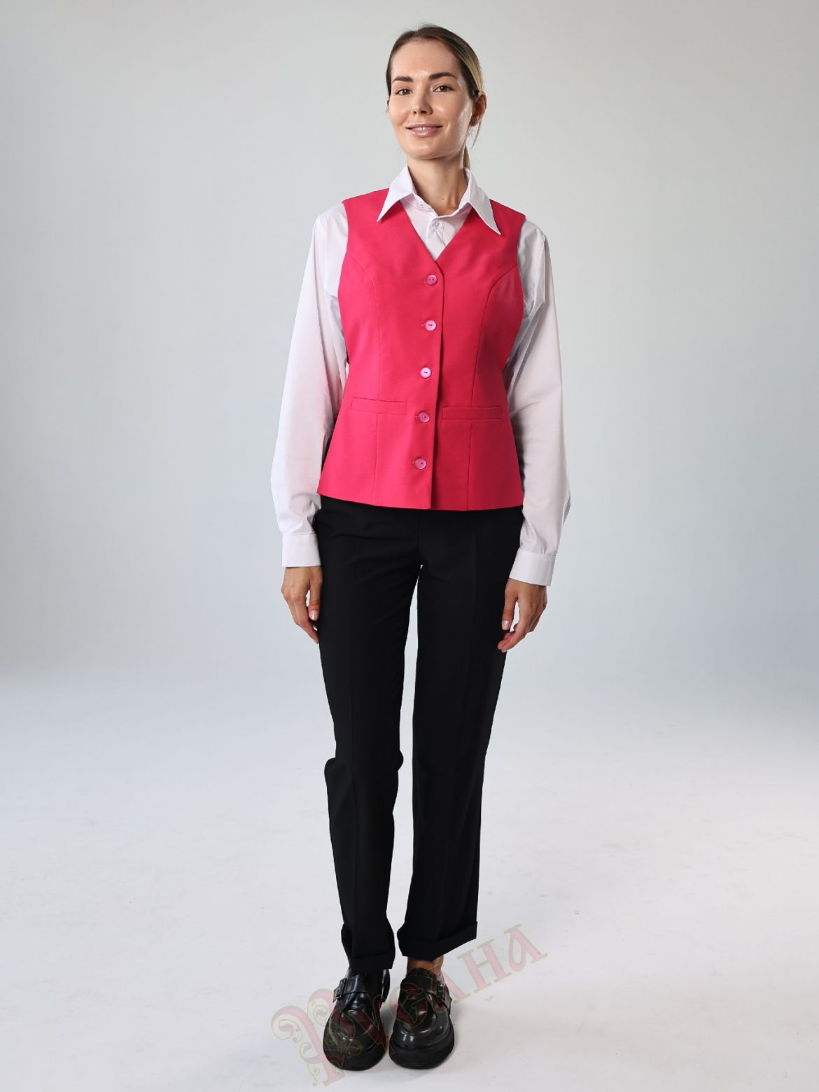 Жилет "Артемида" женский для униформы работников сферы услуг и торговли. Идеальное решение для корпоративной одежды продавцов, официантов, менеджеров, администраторов, работников сферы обслуживания, специалистов производственных и хозяйственных объектов. Униформа разрабатывается с учетом нормативных актов и условий труда. Цвет можно выбрать, минимальная партия от 10 шт. Цена модели может измениться в зависимости от категории ткани. Представлена базовая модель.