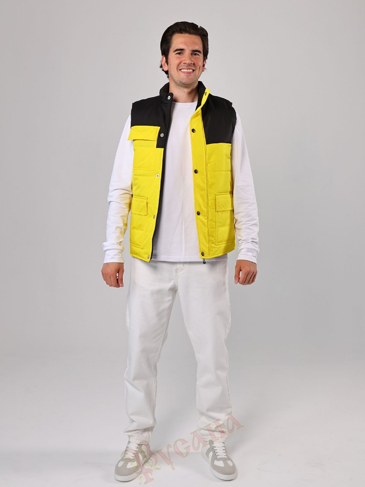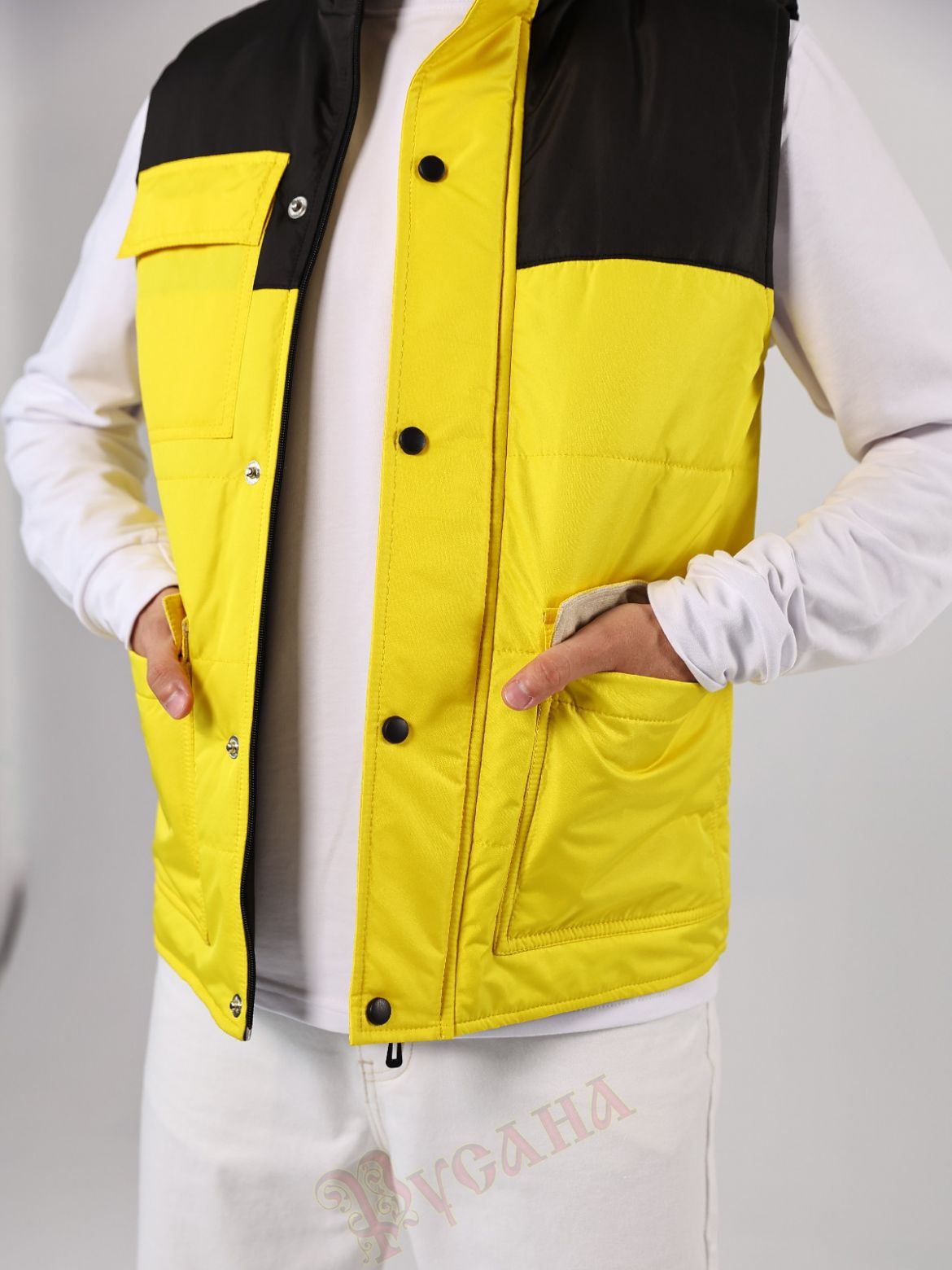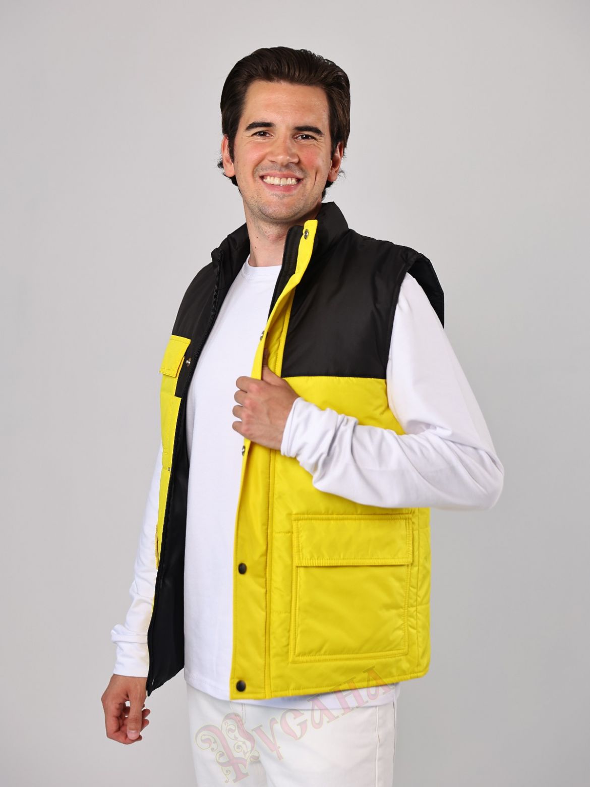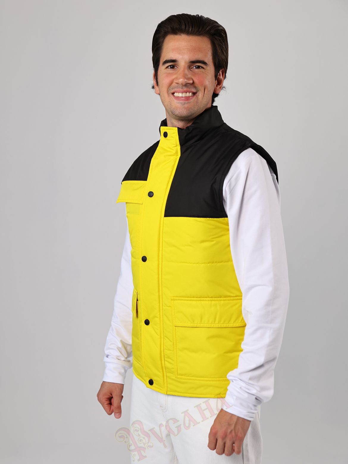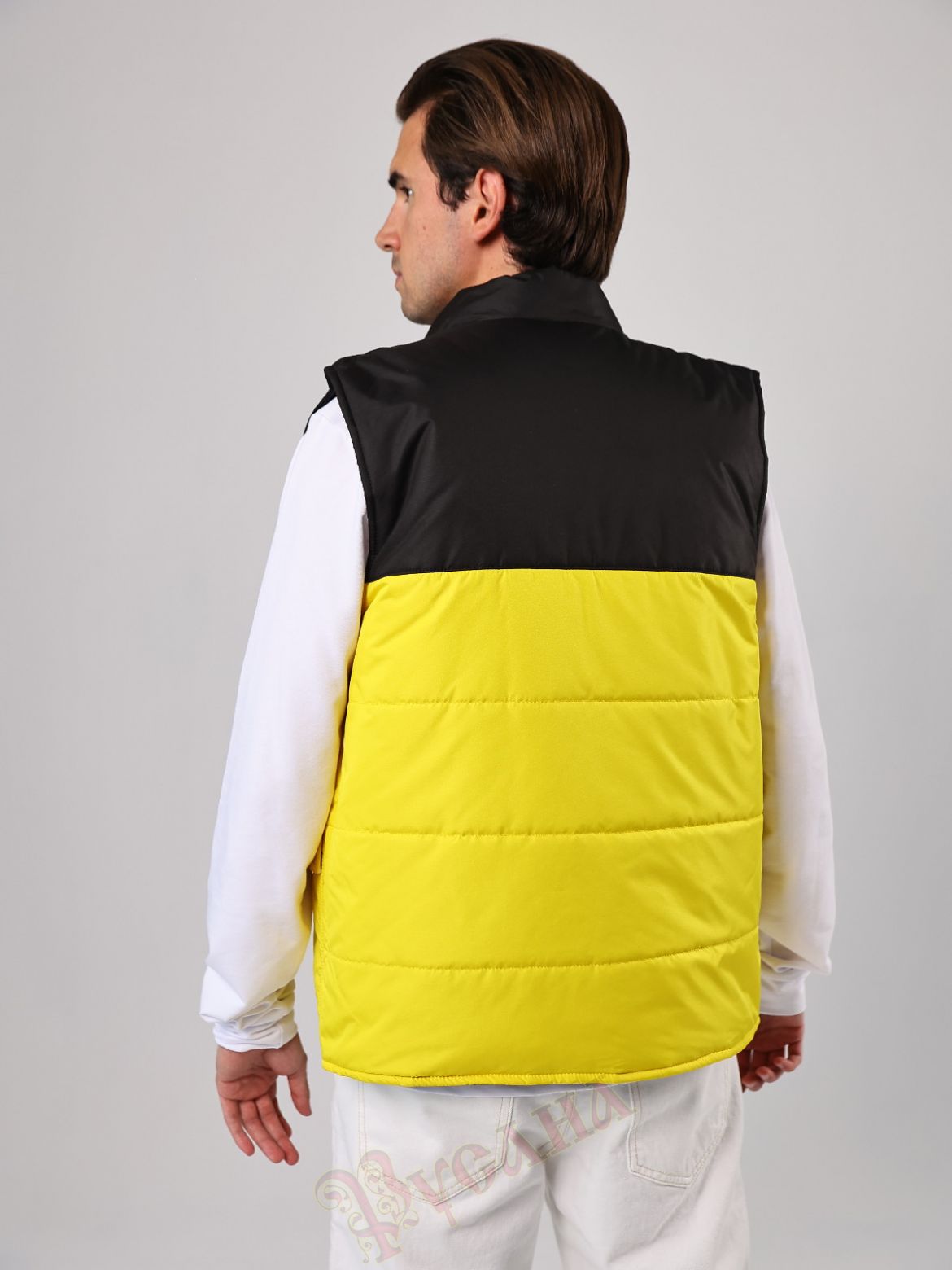 Жилет утепленный "Прометей" для корпоративных клиентов. Модель подходит мужчинам и женщинам. Яркая модель жилета. На жилете 3 накладных кармана с клапанами, нижние карманы с подкладкой флис для тепла и уюта, верхний карман без подкладки. Карманы настрочены двойной строчкой, используем только армированные титки, поэтому очень прочные. Силуэт прямой, утеплитель 200 г/кв.м, подкладка плотная твилового переплетения. Модель простая и может использоваться для разных возрастов и типов фигур, что очень важно при заказе массового пошива. Жилет подойдет для волонтерских проектов, для работников производства, сферы торговли и обслуживания, работников складов и торгового зала. В униформе и спецодежде важно сочетание корпоративнх цветов, здесь представлен черный с желтым, но можно сделать сочетание на ваш выбор, цветовая палитра плащевых тканей очень большая